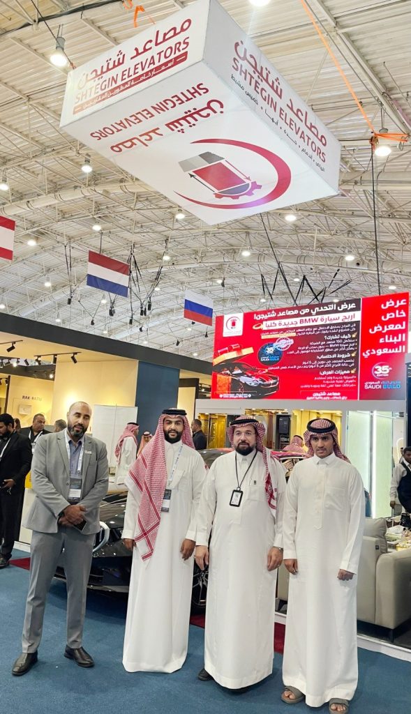 استقبل الأستاذ/ جراح غزاي والمهندس/ كرم سامي فريق منتدى ينبع الصناعي في جناح شركة مصاعد شتيجن في معرض البناء السعودي 2025.
