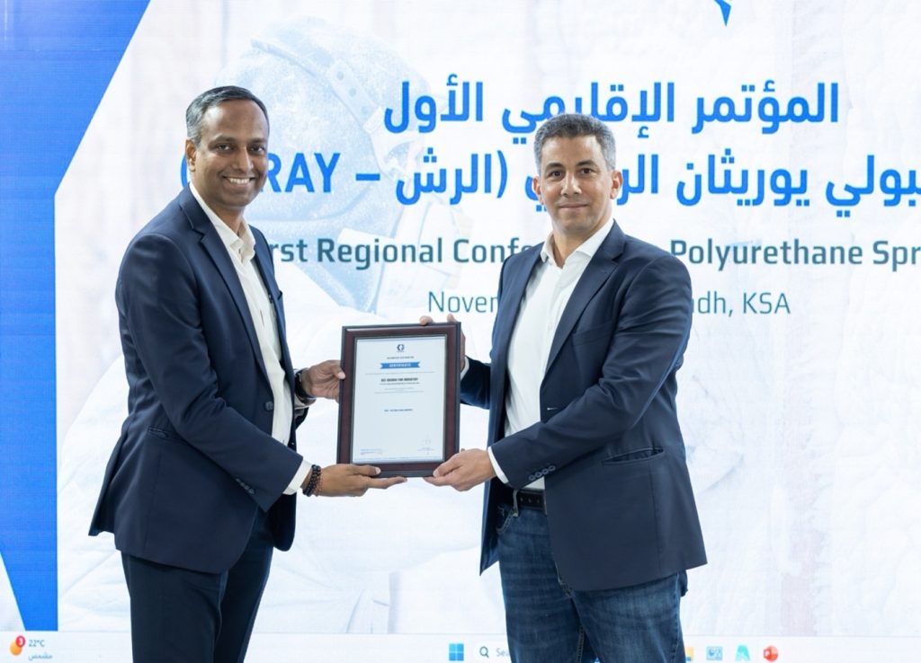 وأضاف: «باتت شركتنا اليوم مجهّزة بالكامل لتوفير مواد رغوية خام متطوّرة تقنياً وصديقة للبيئة تحتوي على مكوّنات مستدامة، بما يسهم في دعم الاقتصاد الدائري. كما نفتخر بحصولنا على شهادة المطابقة من الهيئة السعودية للمواصفات والمقاييس والجودة (SASO)، إضافة الى شهادتي ISO 14001 و ISO 9001 لمواد الرش الخاصة بنا، مما يعكس التزامنا بمعايير الجودة والاستدامة العالمية”.