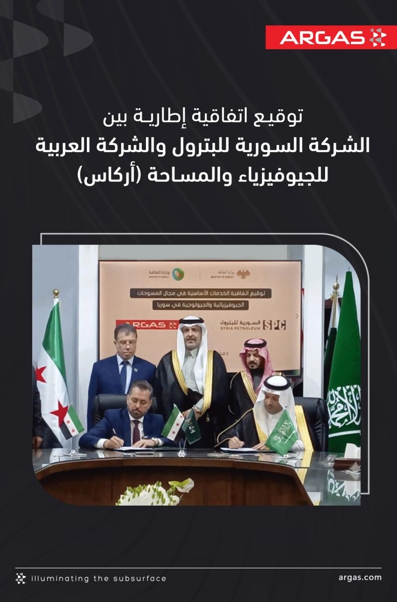 ARGAS is pleased to announce the signing of a long-term strategic framework agreement with the Syrian Petroleum Company to provide 2D and 3D seismic survey services.