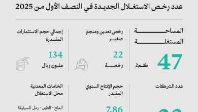 أعلنت وزارة الصناعة والثروة المعدنية، تسجيل الرخص الجديدة للاستغلال التعديني ارتفاعاً قياسياً خلال النصف الأول من عام 2025، بلغت نسبته…